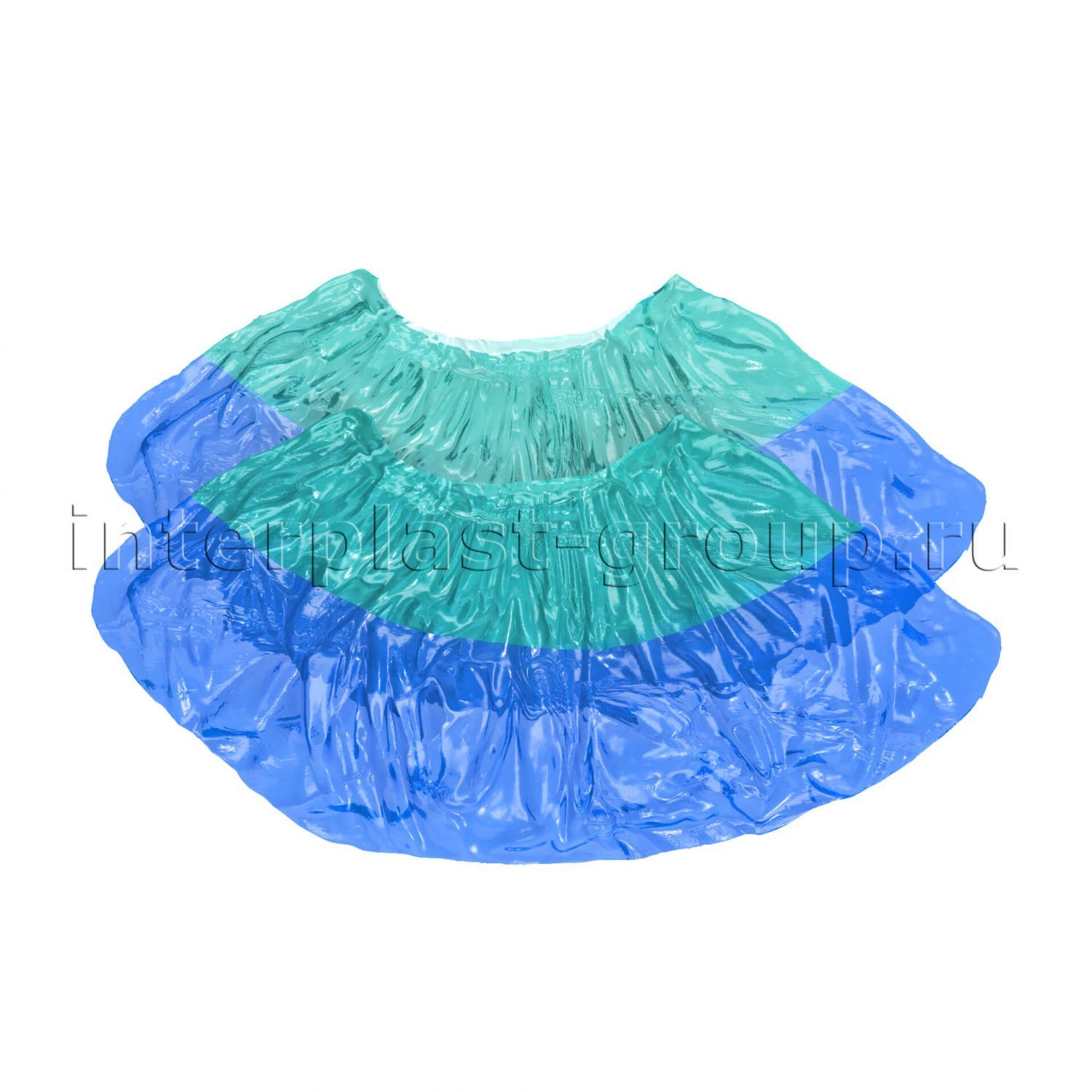 Бахилы бирюзово-синие 1000 шт (500 пар), 64 мкм, двойная подошва, двойная резинка, Особопрочные+